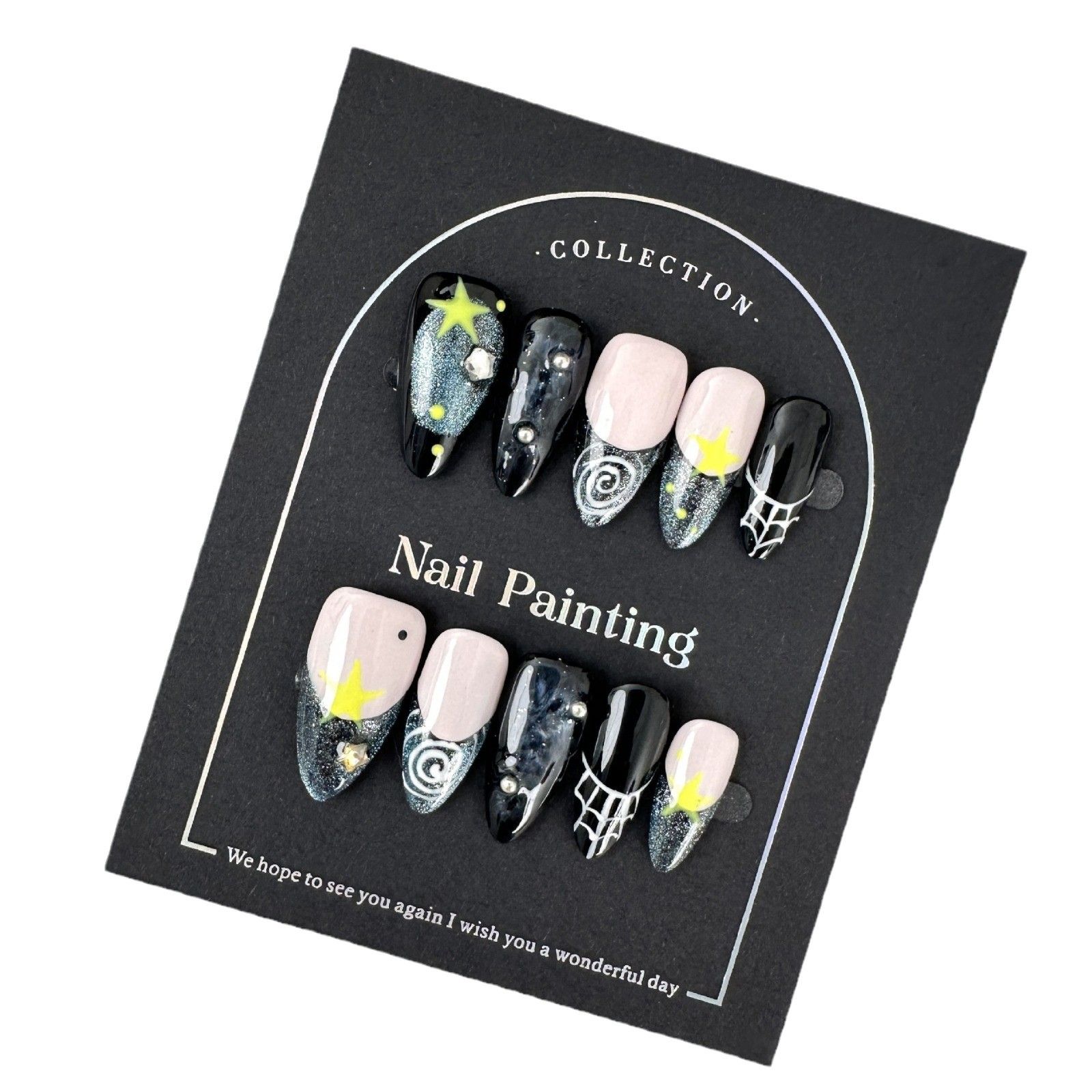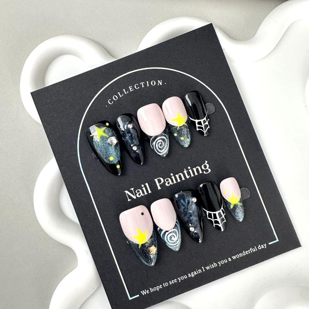 Starry night sky pure hand-painted nail art(zjm019)
