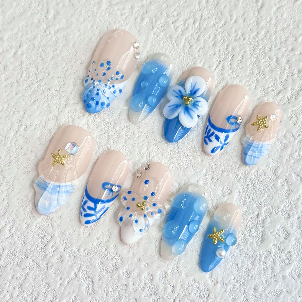 Three-dimensional carved blue nail art(zjm026)